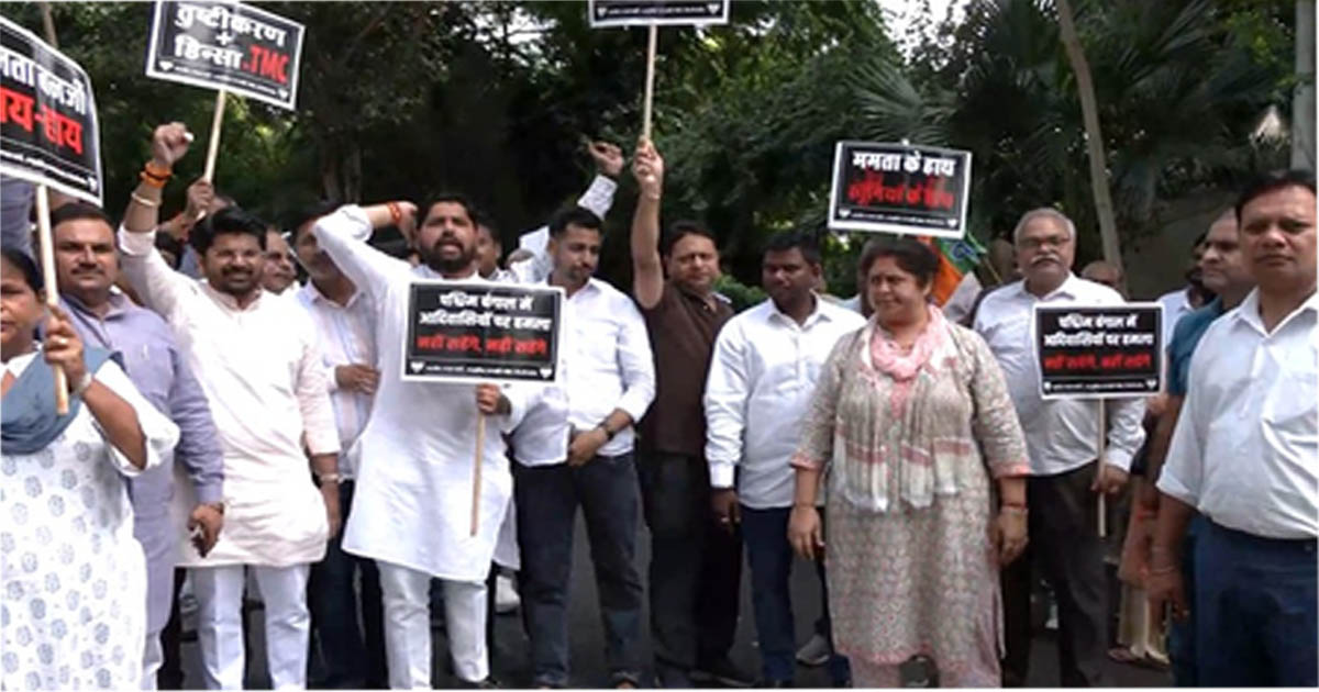 नई दिल्ली, 7 अक्टूबर : पश्चिम बंगाल के जलपाईगुड़ी जिले में भाजपा सांसद खगेन मुर्मू पर हुए जानलेवा हमले के विरोध में मंगलवार को दिल्ली भाजपा अल्पसंख्यक मोर्चा और भाजपा के कई कार्यकर्ताओं ने विरोध प्रदर्शन किया। प्रदर्शनकारियों ने पश्चिम बंगाल की मुख्यमंत्री ममता बनर्जी पर आरोप लगाया कि उनके राज में भाजपा नेताओं पर लगातार हमले हो रहे हैं और राज्य में कानून व्यवस्था पूरी तरह ध्वस्त हो चुकी है।