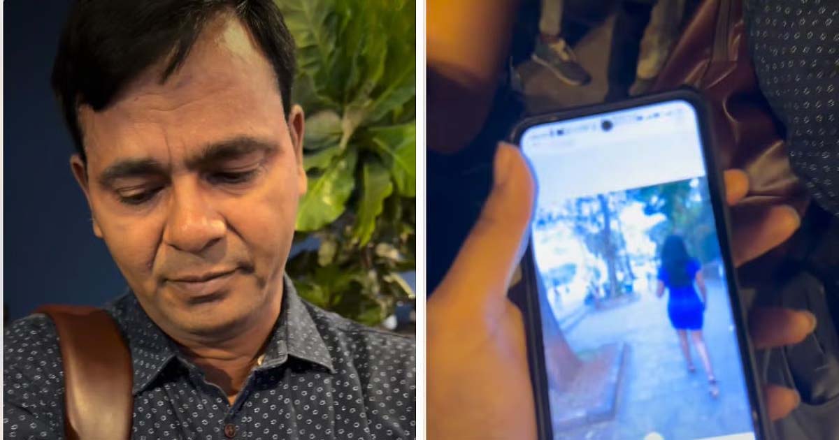 अपना नाम “राजीव” बताने वाले उस व्यक्ति को यह कहते हुए सुना जा सकता है, “माफ़ कीजिए, मैं ऐसा दोबारा नहीं करूँगा,” तभी महिला पूछती है, “आपको किसी की भी तस्वीरें लेने का अधिकार किसने दिया?” वह उसके व्यवहार पर सवाल उठाते हुए कहती है, “क्या आपके परिवार में बेटियाँ नहीं हैं?” और यह भी बताती है कि वह शादीशुदा है।