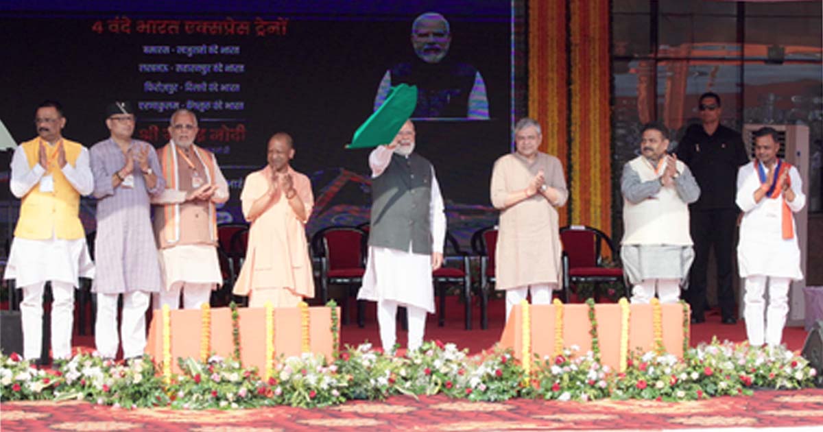 वाराणसी, 8 नवंबर: प्रधानमंत्री नरेंद्र मोदी ने शनिवार को बनारस रेलवे स्टेशन से चार नई वंदे भारत ट्रेनों को हरी झंडी दिखाकर रवाना किया। इनमें वाराणसी-खजुराहो वंदे भारत एक्सप्रेस को प्रधानमंत्री ने बनारस रेलवे स्टेशन से रवाना किया, जबकि दिल्ली-फिरोजपुर, लखनऊ-सहारनपुर और एर्नाकुलम-बेंगलुरु वंदे भारत एक्सप्रेस को उन्होंने वर्चुअली झंडी दिखाकर रवाना किया।