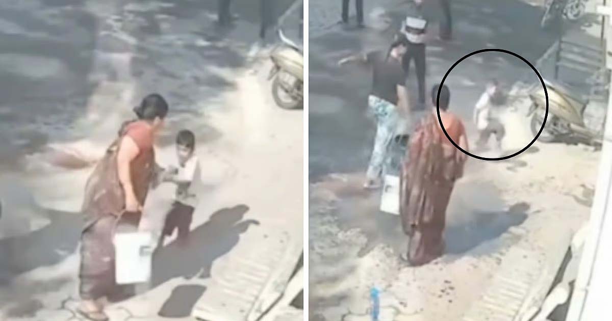 यह घटना 3 मार्च को कोराडी क्षेत्र के आरामशिन इलाके में घटी और सीसीटीवी फुटेज में कैद हो गई। ऑनलाइन सामने आए वीडियो में महिला पानी की बाल्टी लेकर चलती हुई दिखाई दे रही है, तभी एक बच्चा पेंट से भरी स्प्रे बोतल लेकर उसके पास आता है।